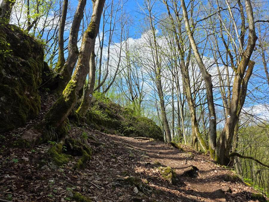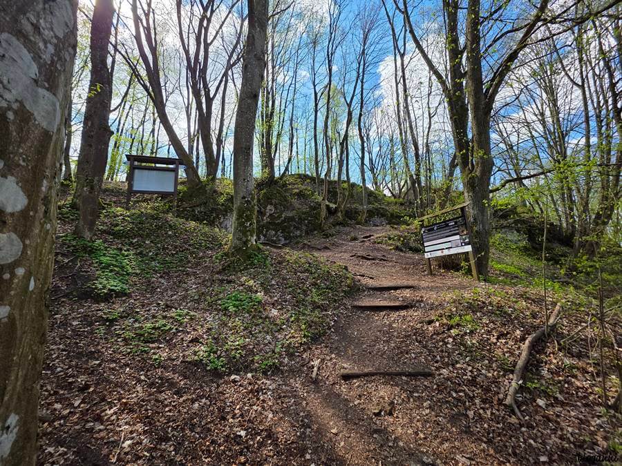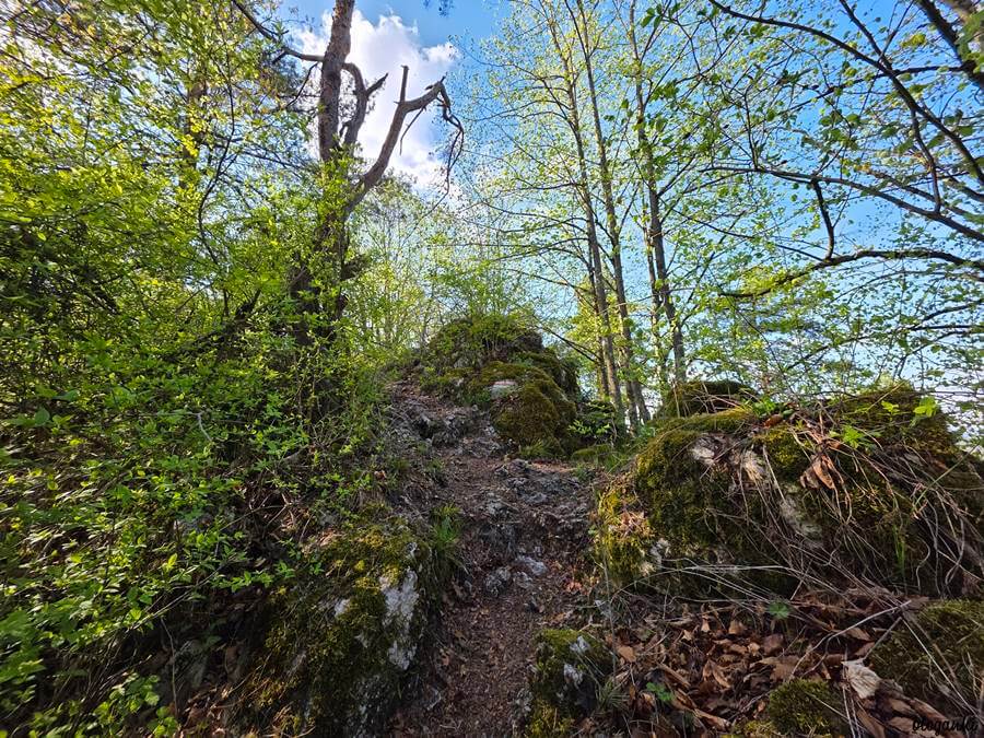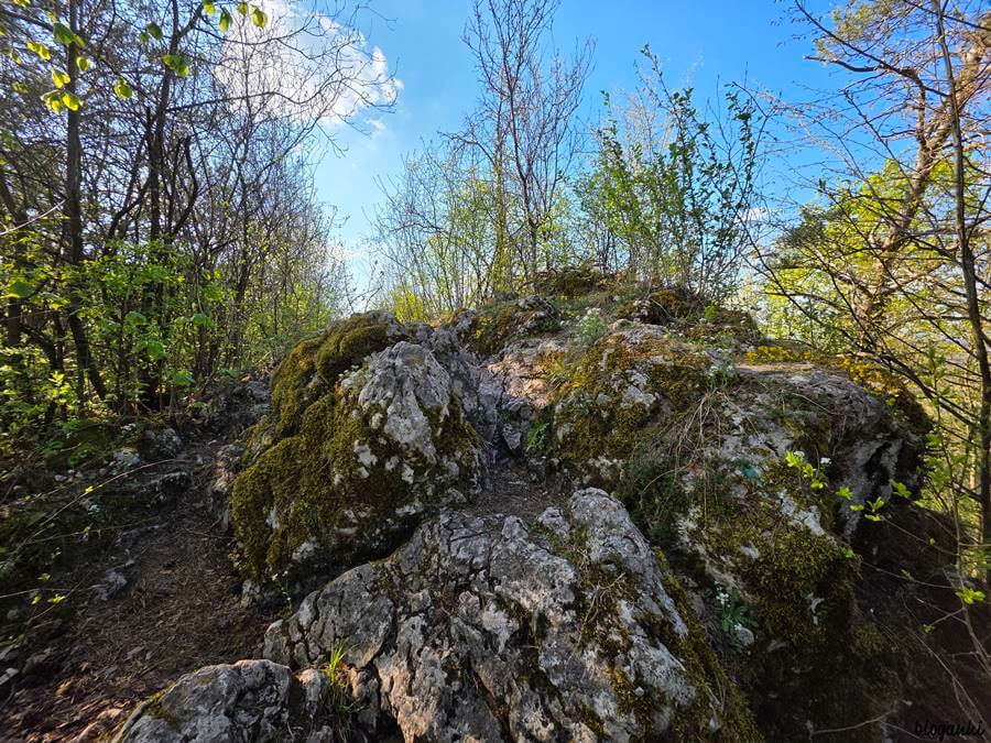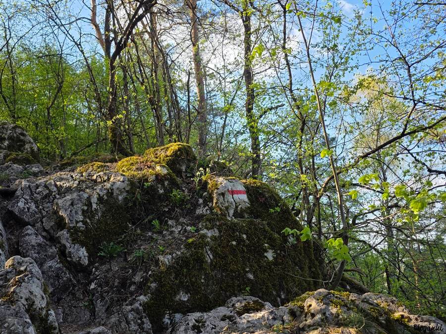 Część grzbietową stanowi grań skalna, po której niejednokrotnie trzeba będzie się wspinać. Na końcu grani jest ławka. Kieruj się szlakiem czerwonym wyjdziecie wprost na znane rozdroże szlaków czerwonego i niebieskiego. Dojdziecie nim do Chęcin.