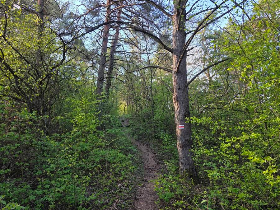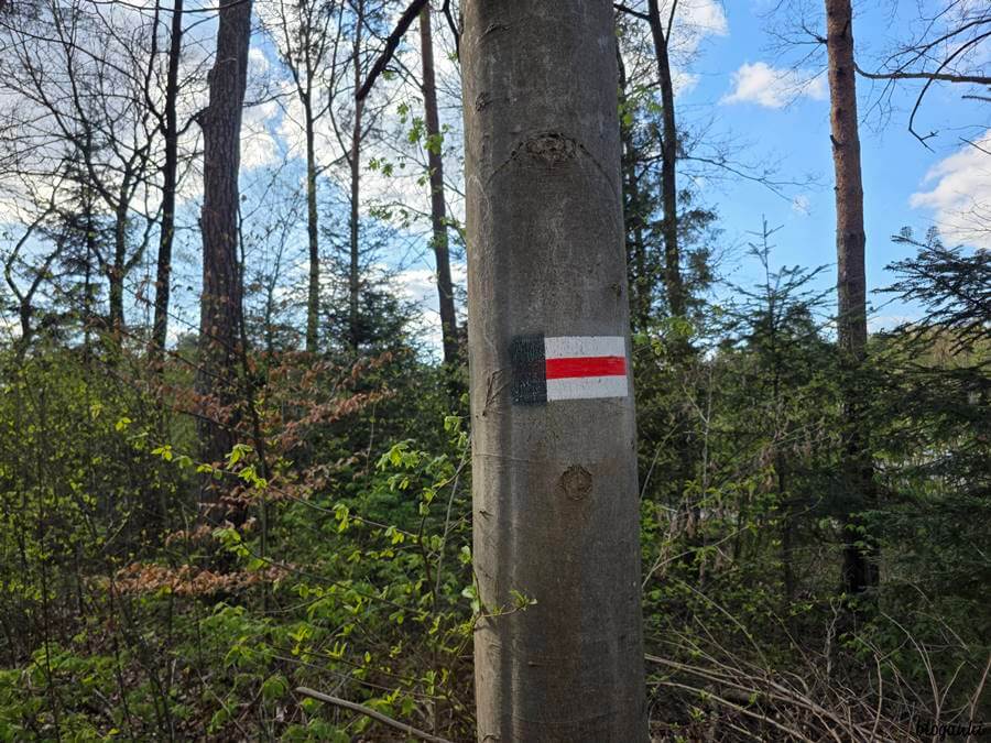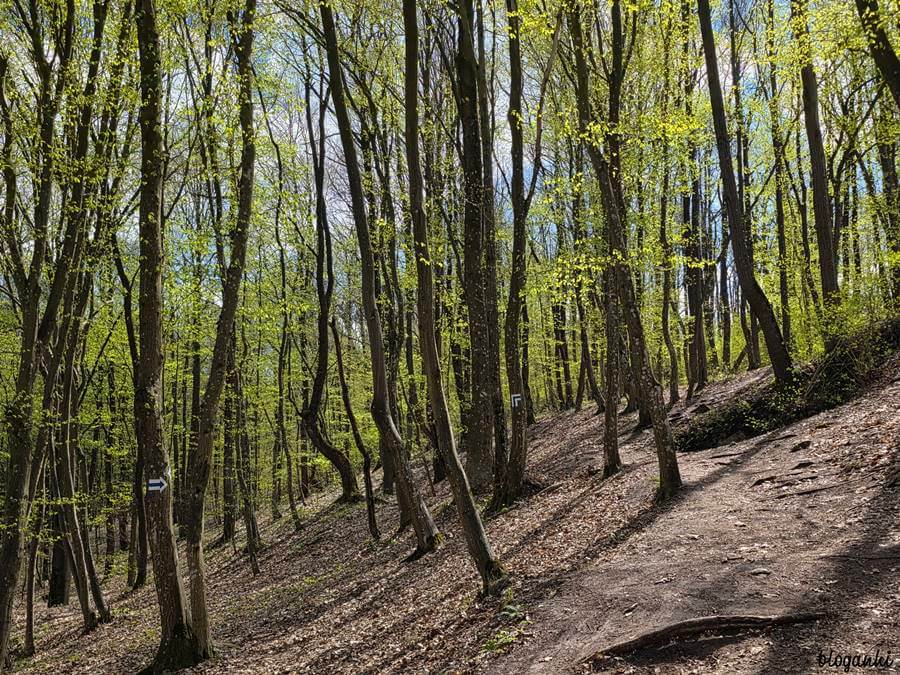 Uwaga, przy Jaskini Raj zmienia się kolor szlaku – wejdźcie na szlak czerwony w kierunku Chęcin. Poprowadzi Was on przez las (uwaga, może być mokro!) aż do Czerwonej Góry. Przejdźcie przez jezdnię prowadzącą do szpitala, a następnie na krótki leśny odcinek.