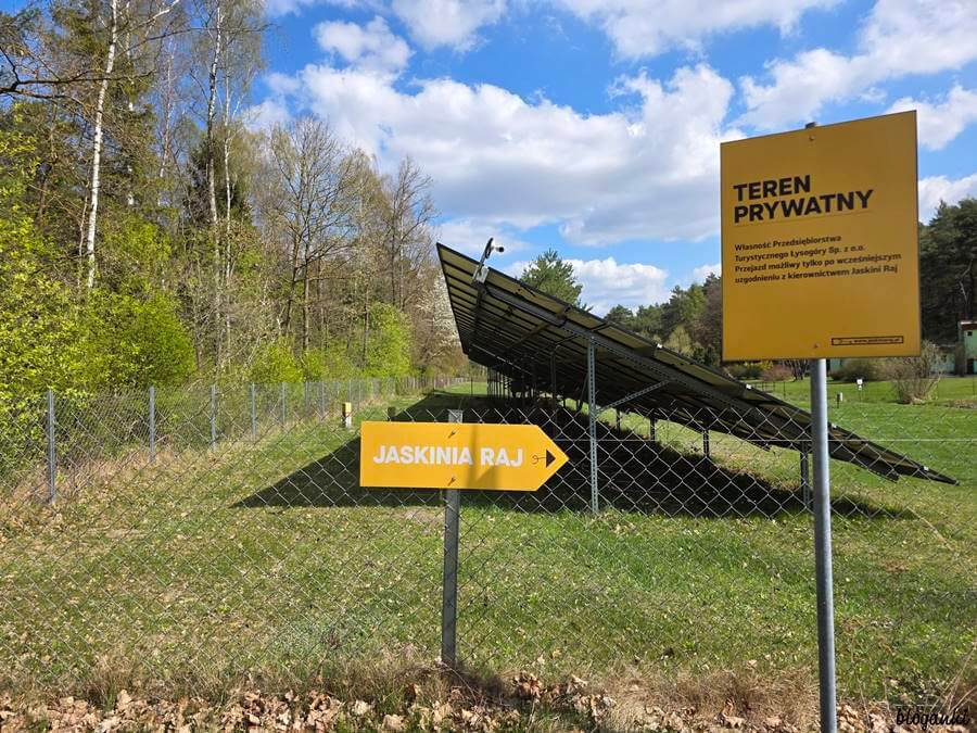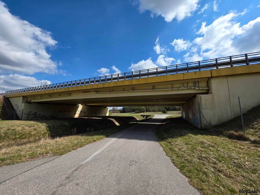 Przed Wami ok 2,5 km drogi przez las, z którego wyjdziecie tuż przy trasie S7. Pod trasą, wzdłuż rzeki Bobrzyczki biegnie przejście. Niebieskim szlakiem dojdziecie w pobliże Jaskini Raj. Po drodze warto odwiedzić Kamieniołom Szewce.