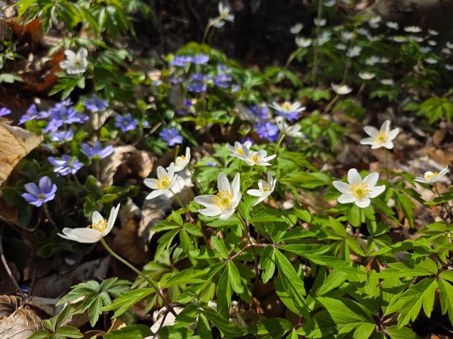 W kwietniu szlak od Chęcin w kierunku Góry Zalejowej cały obsypany jest kwiatami. Czuć zapach ziemi. Kobierce białych jak śnieg zawilców wyjątkowo pięknie prezentują się przy niebiesko-fioletowych przylaszczkach. Tarniny rosnące przy szlaku całe obsypane są masą drobnych białych kwiatów. W Góry Świętokrzyskie czuć, że zawitała długo oczekiwana wiosna.