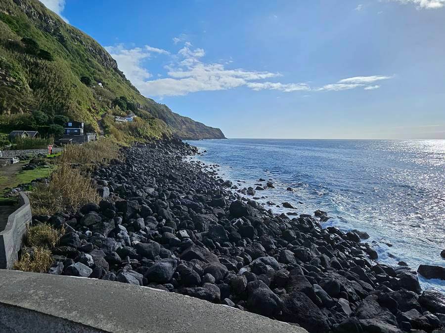 Po kilku zakrętach w kształcie litery S odnajdziecie objazd do Rocha do Cascalho (1,2 km w obie strony). Ten objazd doprowadzi Was do kilku winnic otoczonych tradycyjnymi zagrodami z bazaltowego kamienia i do strefy wypoczynkowej nad morzem.